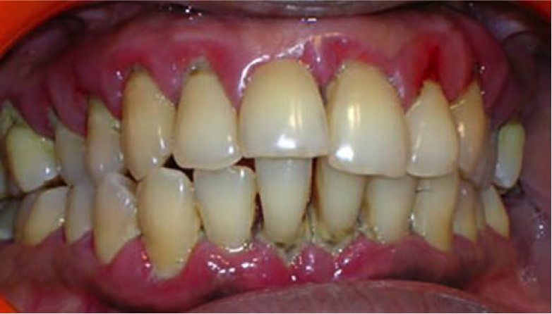 Peradangan jaringan gusi ini berlanjut ke jaringan penyangga gigi (periodontal), sehingga akar gigi akan terlihat dan gigi menjadi goyang. Terbentuklah kantung (pocket) antara gusi dan jaringan periodontal dengan gigi. Lewat celah inilah bakteri dan kuman akan masuk dan bersama aliran darah masuk ke organ-organ tubuh seperti jantung, paru-paru, otak, dll dan menyebabkan penyakit. Pada rongga mulut sendiri, karang gigi ini akan menimbulkan bau mulut yang tidak sedap, gusi mudah berdarah, gigi-gigi menjadi goyang.